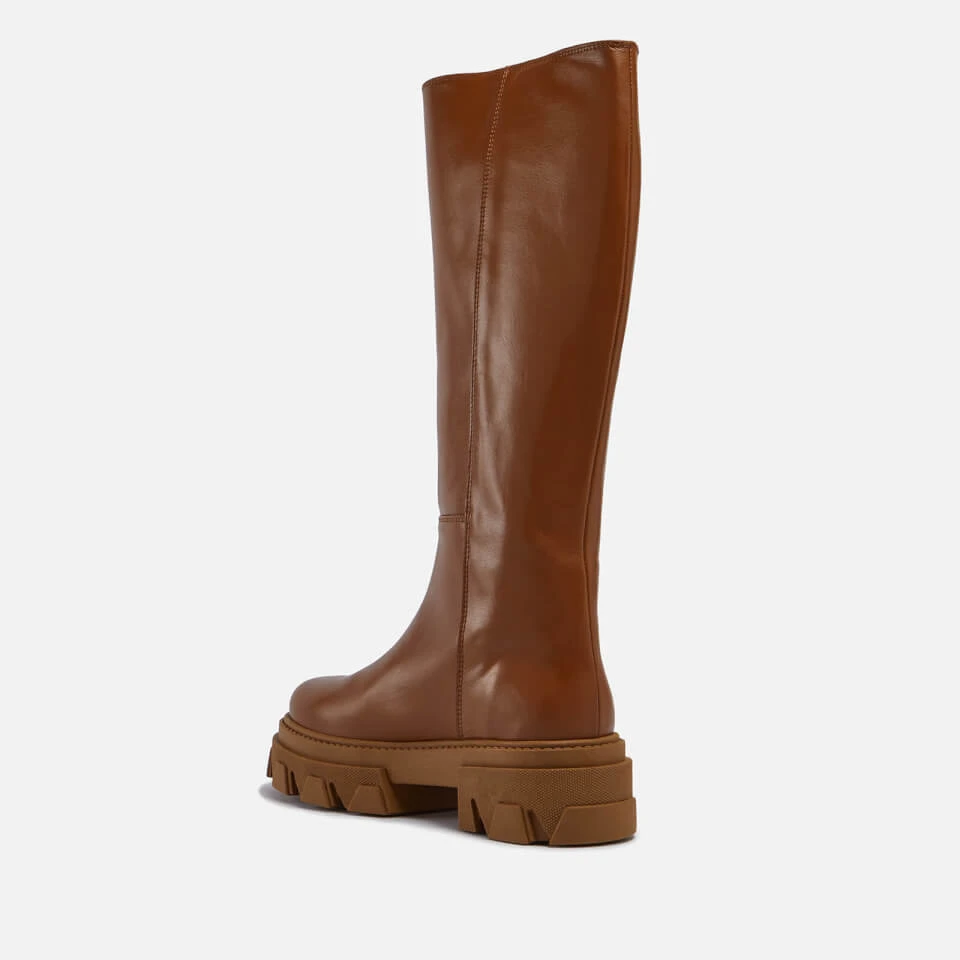 ALOHAS’ Katiuska knee-high boots have chunky rubber soles, making them practical as well as chic. They’re made from leather and hit just below the knee. They’ll work with skinny jeans as well as mini hemlines.