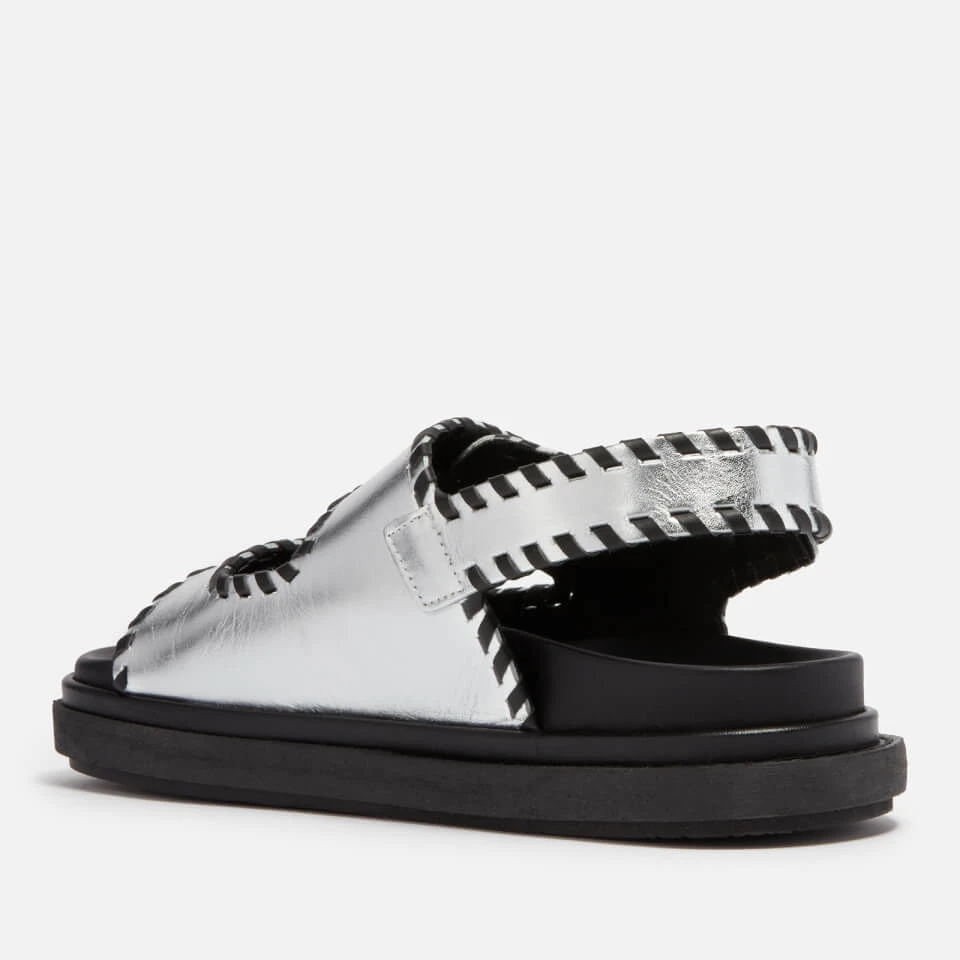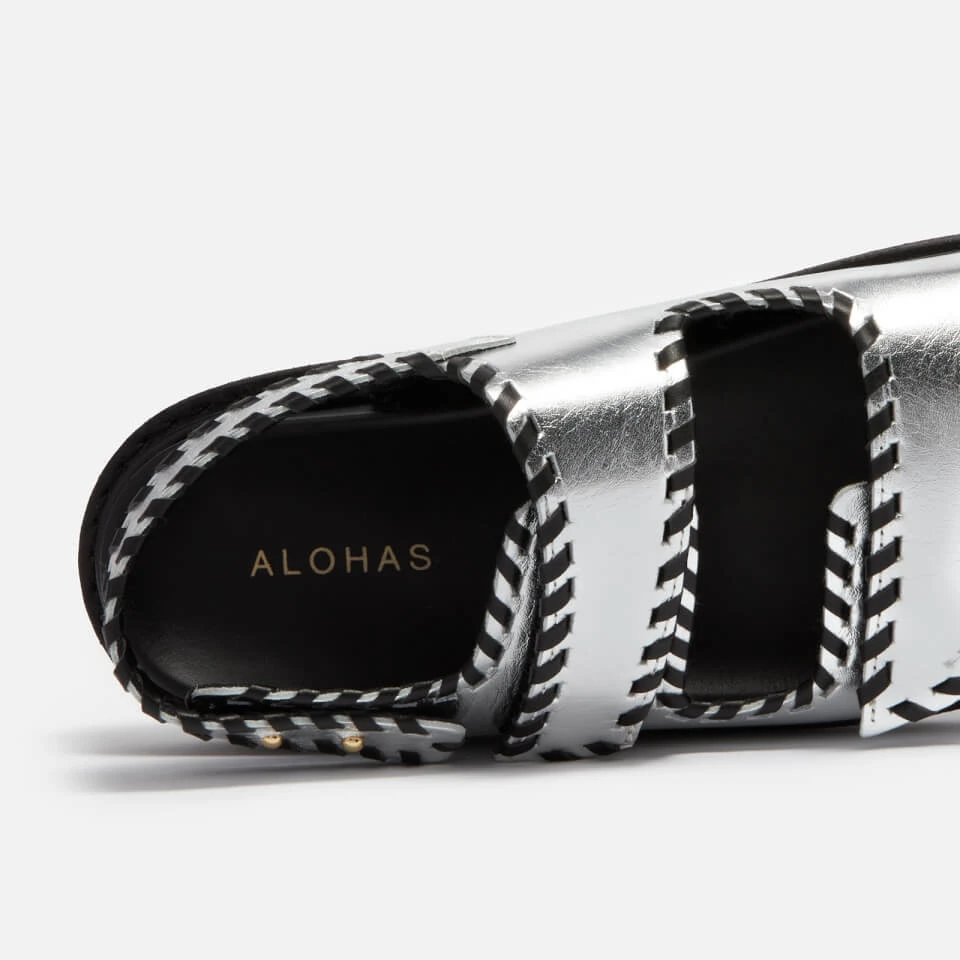 Championing sustainability: ALOHAS handcrafted designs put an emphasis on consciousness and comfort. The Barrel sandals are supported by moulded footbeds and are made from silver leather with contrasting black leather trims. Add these to your high-summer rotations for years to come.