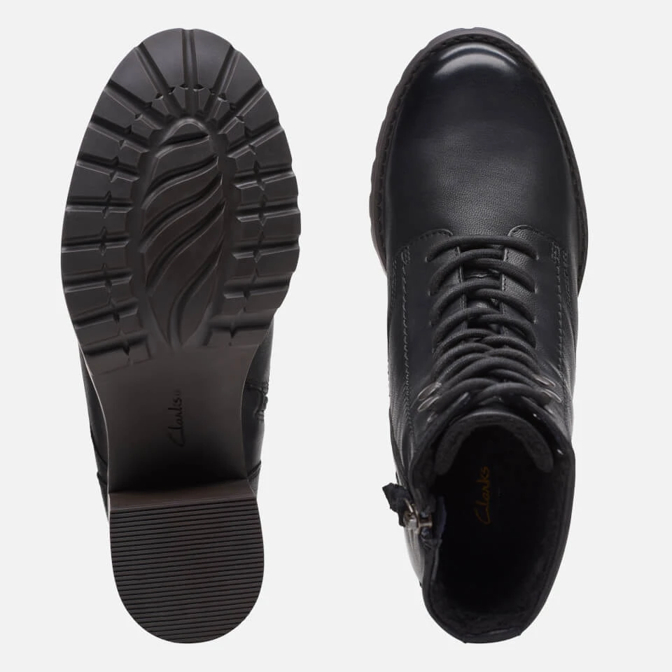 - Faux shearling lining, stacked-effect heels, cleated thermoplastic rubber soles