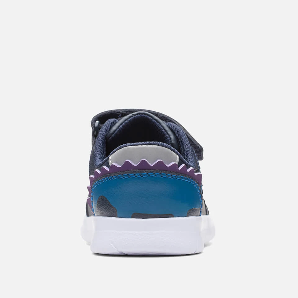 - Appliquéd dinosaur motif heels, debossed designer logos, perforated foxing