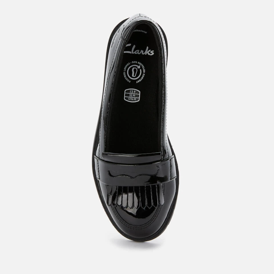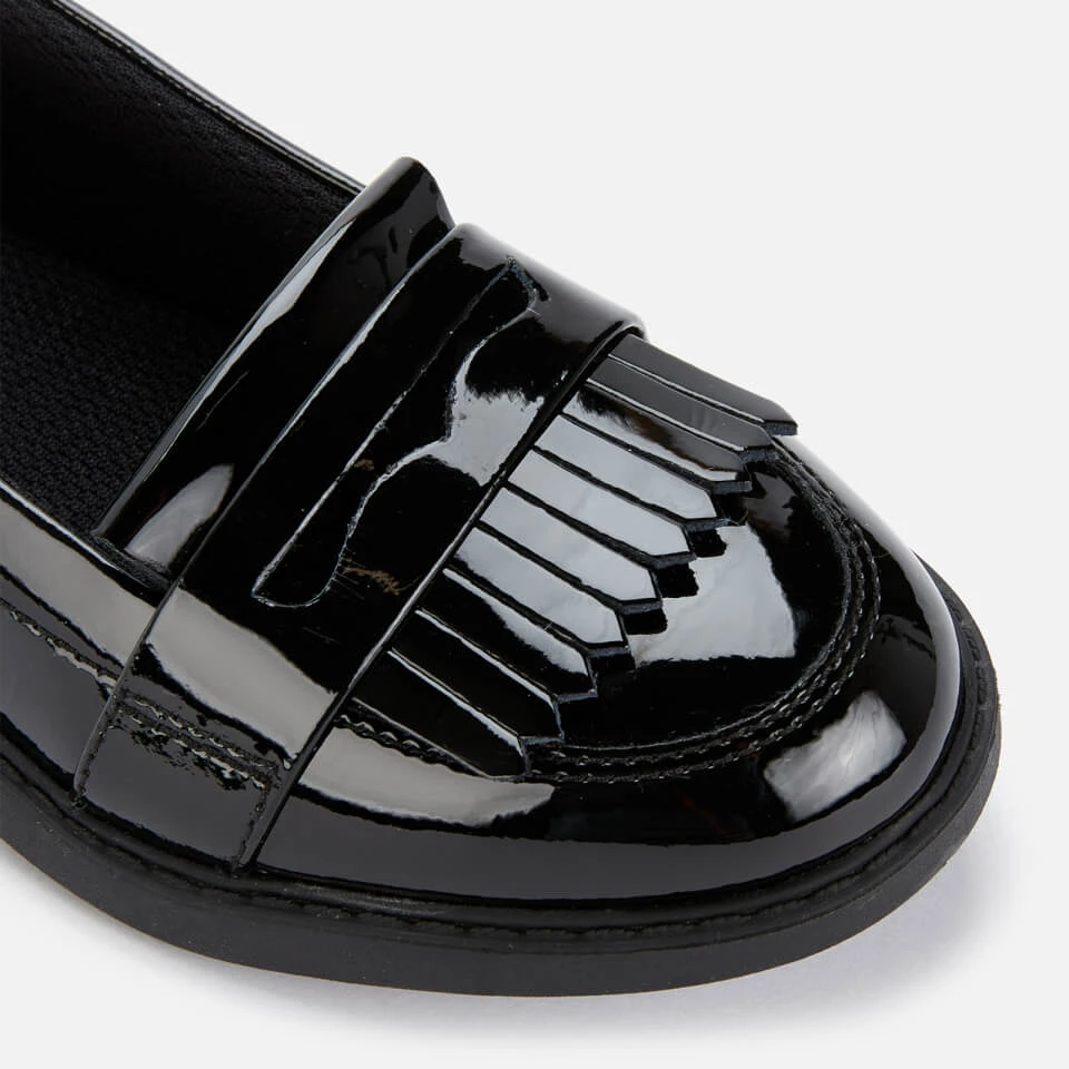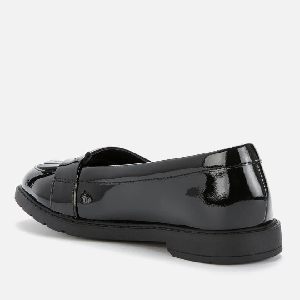 Clarks’ Scala Bright school shoes arrive in polished black patent leather. They have a classic loafer silhouette, with fringe detail at the vamp. The pair are imbued with Agion technology and eco-foam for long-lasting comfort and freshness.