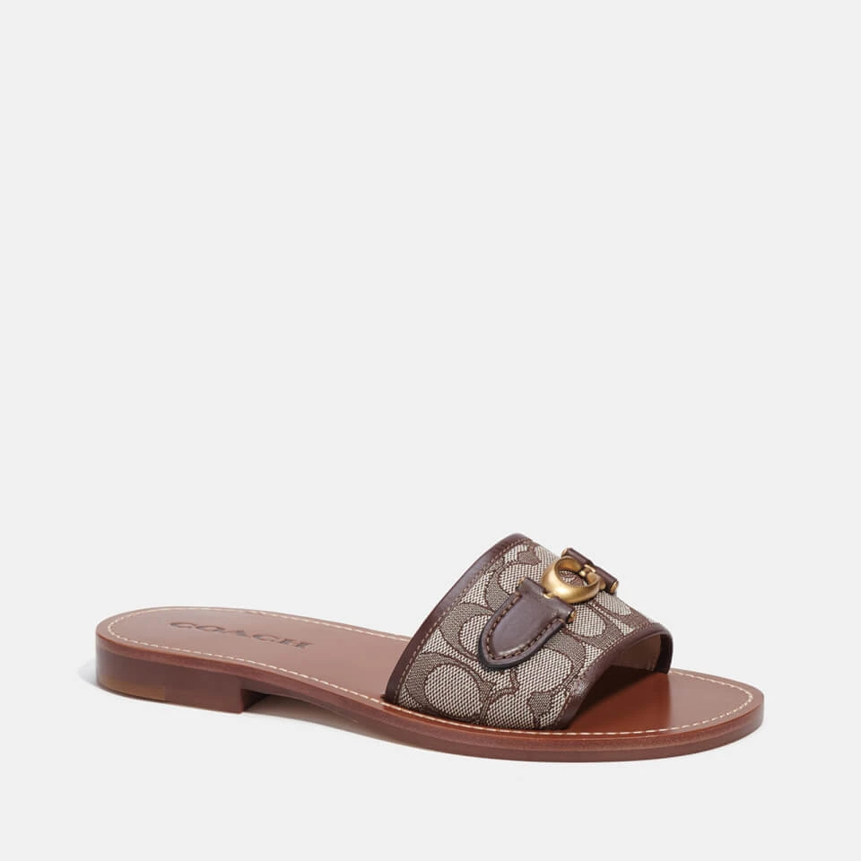 A classic summer staple, Coach’s Ina sandals are made from jacquard with smooth leather trims. They arrive in a neutral brown and white colourway and are topped with a leather and gold-tone ‘penny bar’ straps at the vamps.