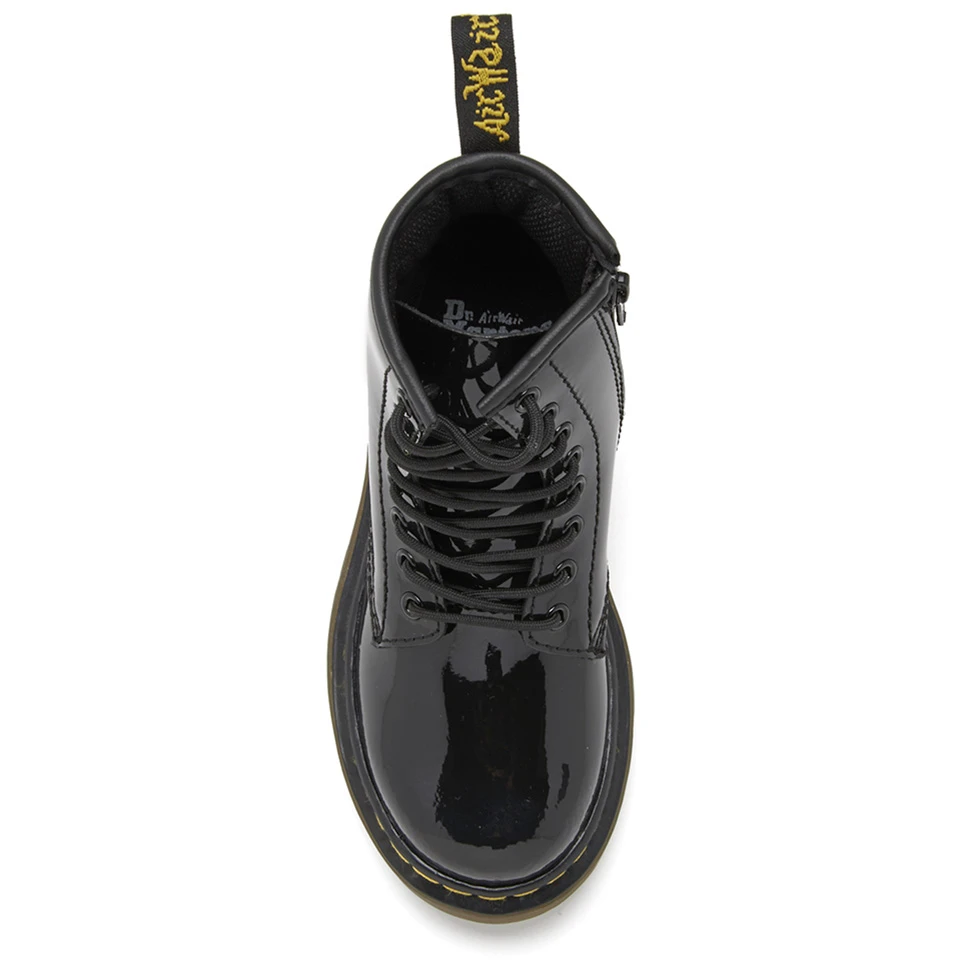 The Dr. Martens 1460 boots for kids keep all the original details of the original 8-eye boots. Made from glossy black Patent Lamper leather for a high-shine finish, they have Goodyear welt soles with signature yellow stitching, grooved sides and an AirWair heel loop. Designed for the next generation of Docs wearers, they’re ideal for growing feet with flexible and comfortable soles.