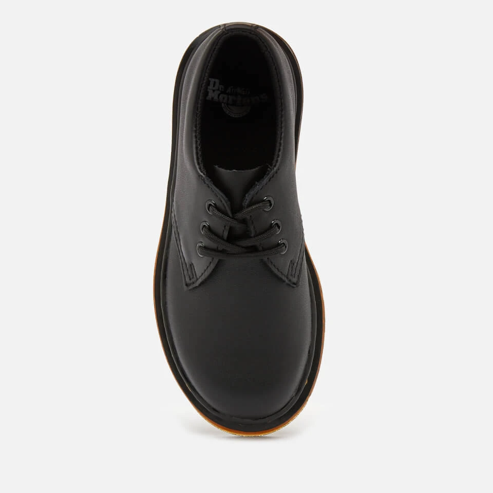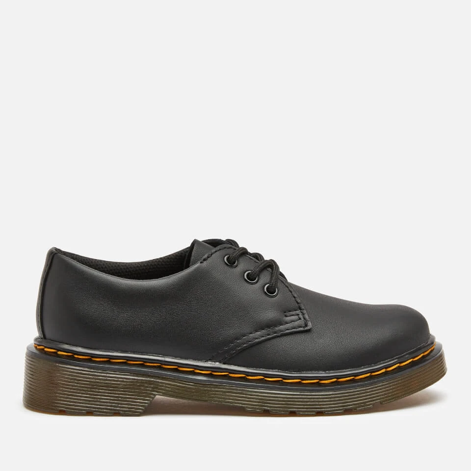 The Dr. Martens Kid’s Shoes feature a Romario leather upper and a flexible, cemented sole. They have a lace-up fastening and classic 3-eye silhouette. Complete with yellow stitch detail to the air-cushioned sole.