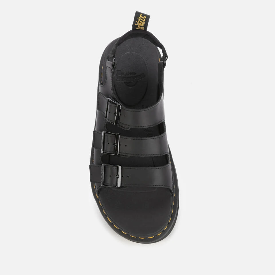 Chunky Dr. Martens sandals with a rugged, summer-ready design. The ‘Solomon’ sandals are made from black Hydro, which is a smooth PU-coated leather with a smooth, matte finish. Fastened with three buckle adjustable straps for a secure fit, the slip-on sandals have a woven strap that fits around the ankle and a padded insert for added comfort.