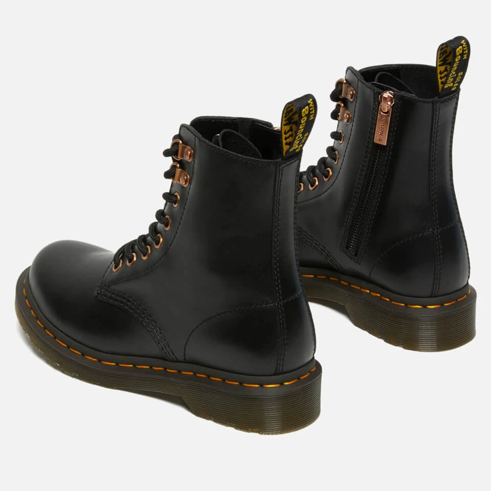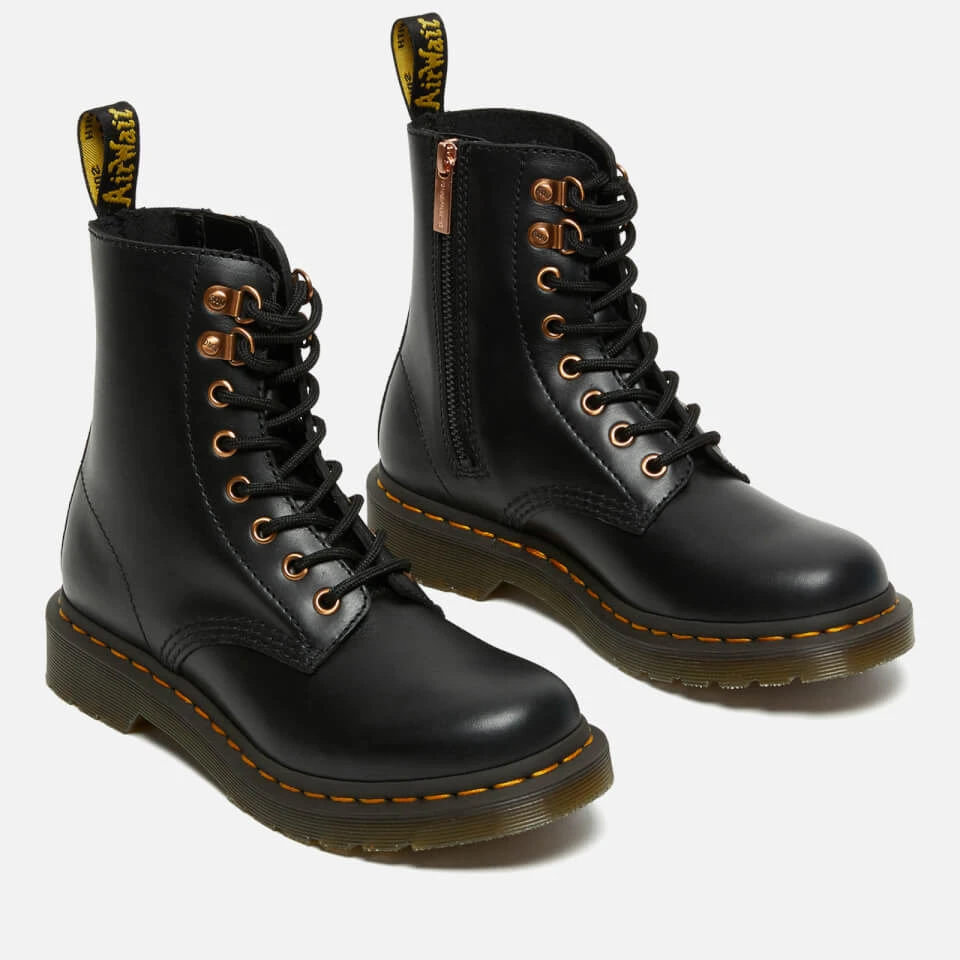 - Pull tabs, eight eyelets, contrast stitching, rubber soles