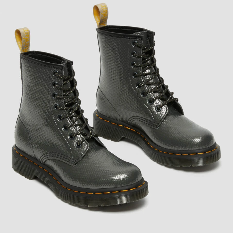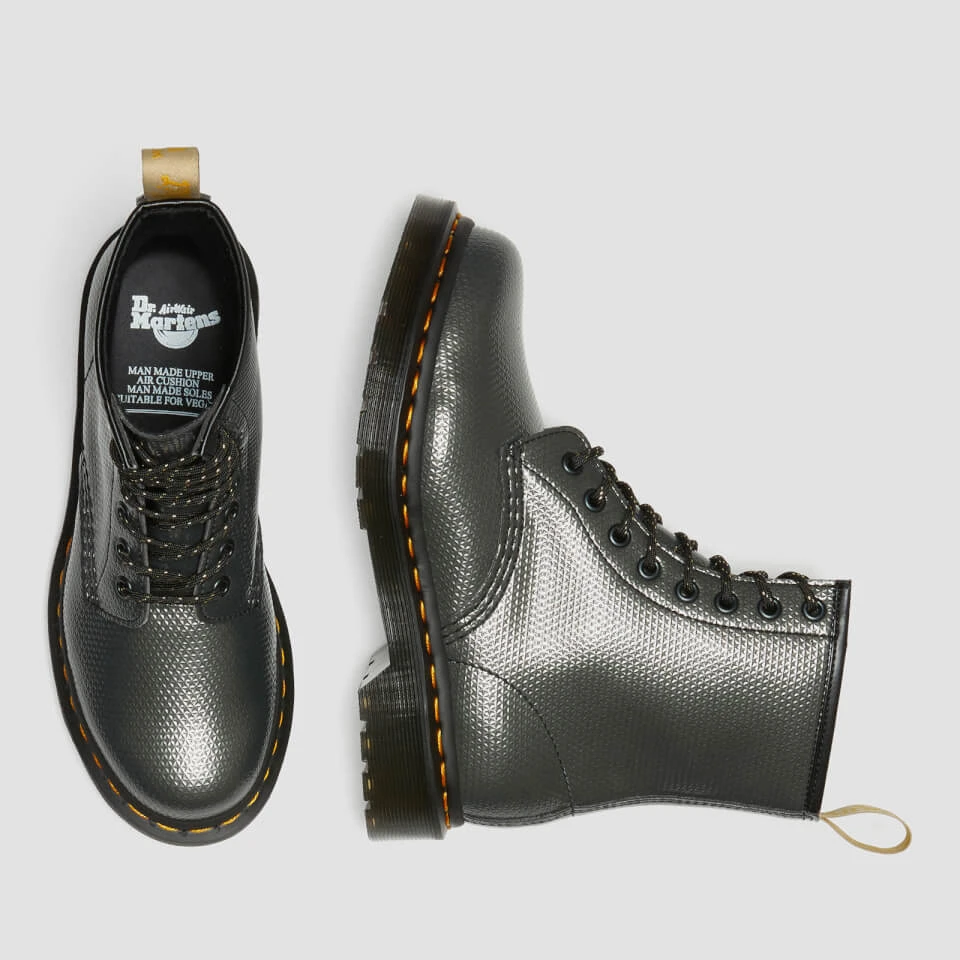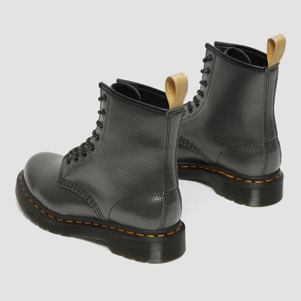 Dr. Martens’ 1460 boots are made from a tough faux leather with a unique textured finish. They’re marked with the brand’s signature yellow stitching and have Goodyear-welted soles.