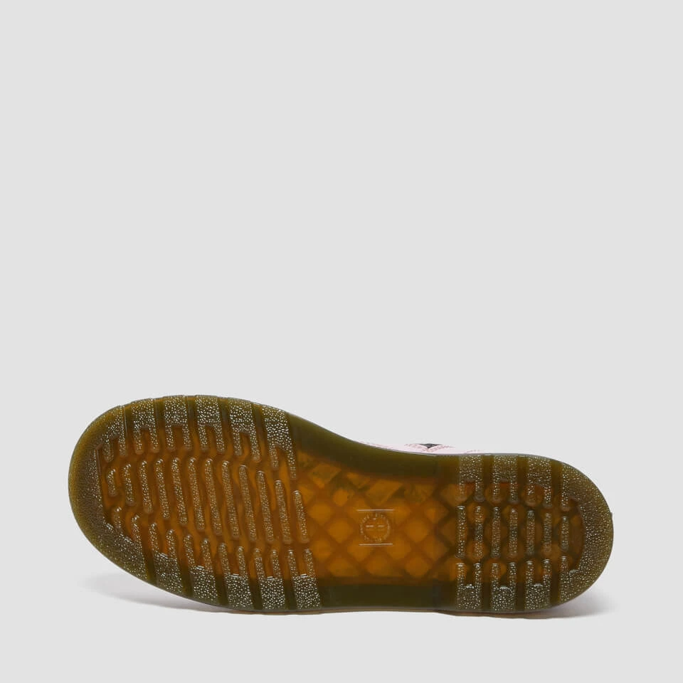 The pale pink 1460 Dr. Martens for toddlers keep all the original details of the original 8-eye boot with the addition of a side zip for easy access. Made from a coated Patent Lamper leather for a high-shine finish. The Goodyear welt soles are reinforced with the signature yellow stitching and topped with an AirWair heel loop.