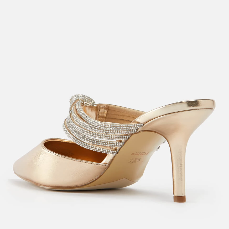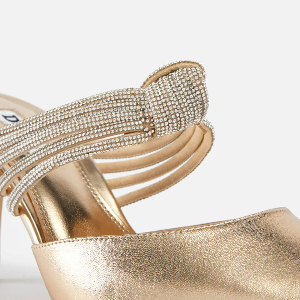- Crystal embellishments, knotted front straps, faux leather linings and soles