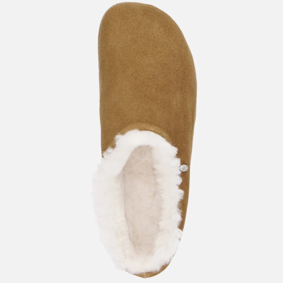 - Sheepskin ankle trims, designer logos, cork and rubber outsoles