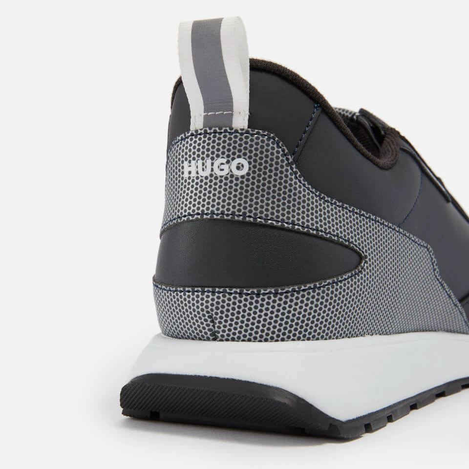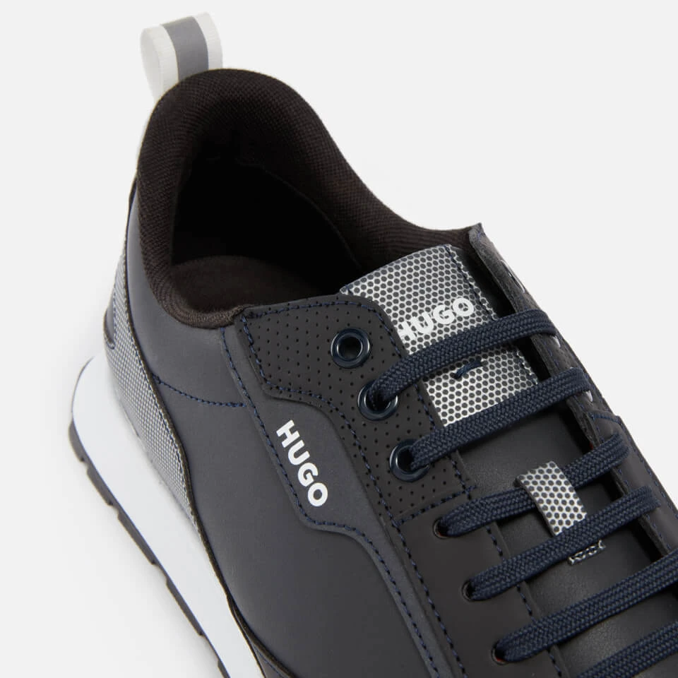 - Pull tabs, perforations, designer logo, mesh linings, rubber soles