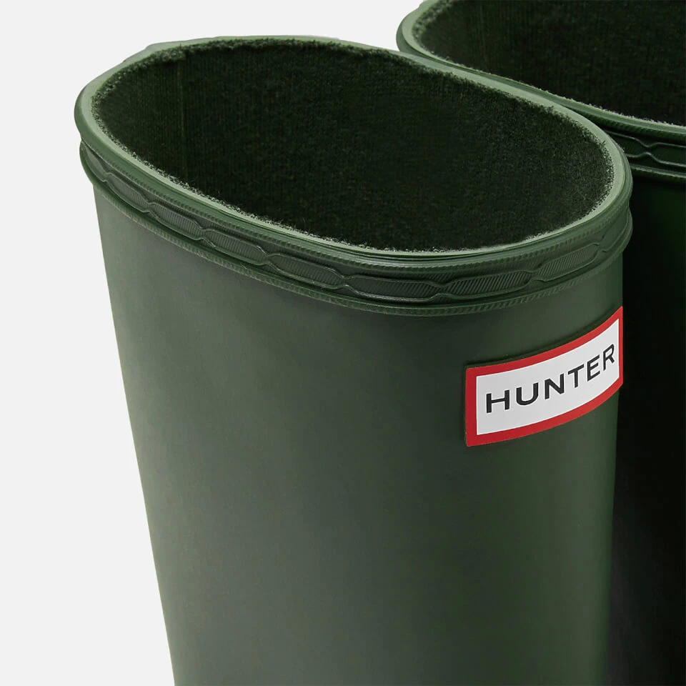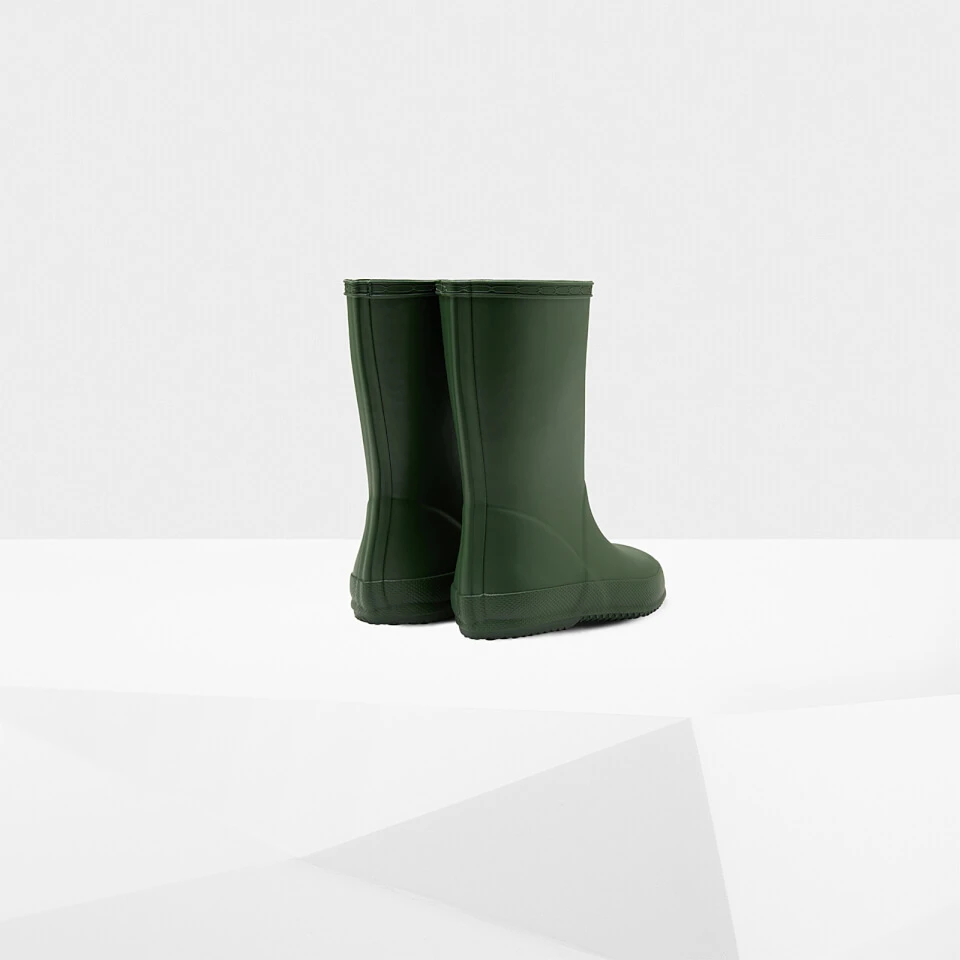 Arriving in a classic Hunter Green hue, Hunter Original Kids’ First Classic Wellington Boots are crafted from durable and waterproof rubber, showcasing a signature logo tab.