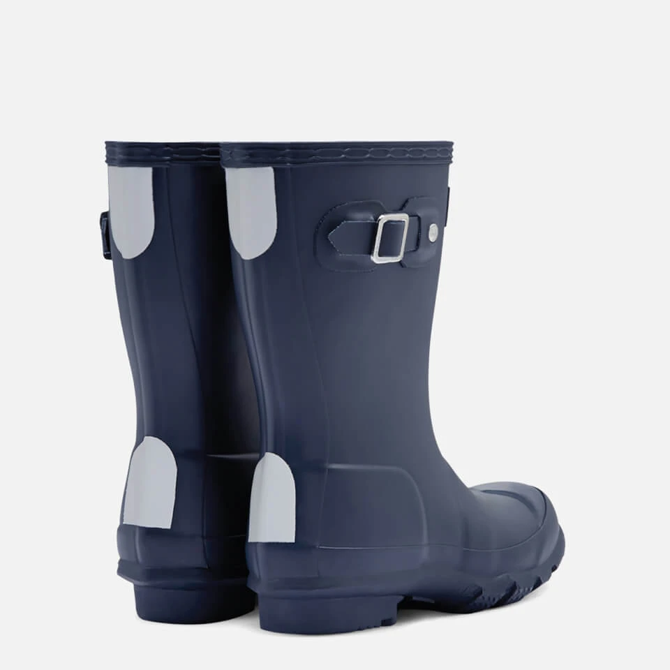Toddlers’ pink ‘Original’ wellies with a matte finish from Hunter. Handcrafted from natural, waterproof rubber, the children’s wellington boots offer a comfortable fit with graded leg height, textile lining and cushioned sponge insoles. Practical and stylish, the wellies are reinforced with a traditional calendered sole and feature buckle detail to the shaft and reflective details for safety. Moulded lines and Hunter logo finish the design with signature qualities.