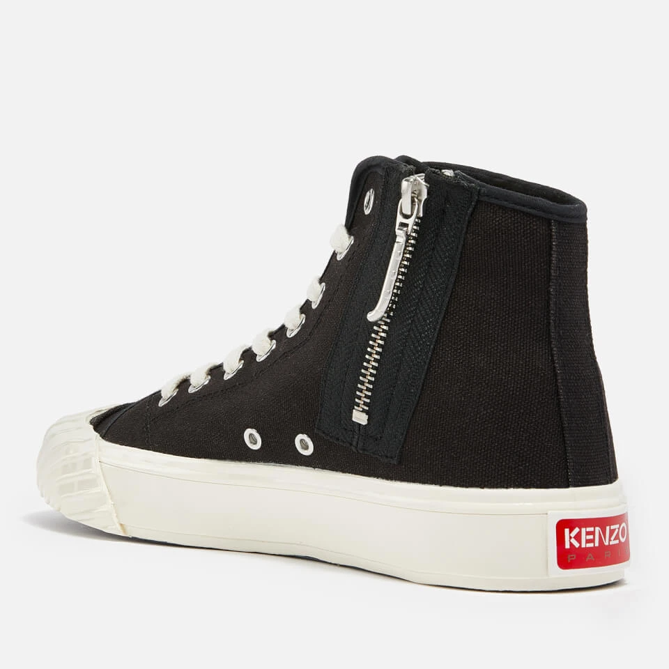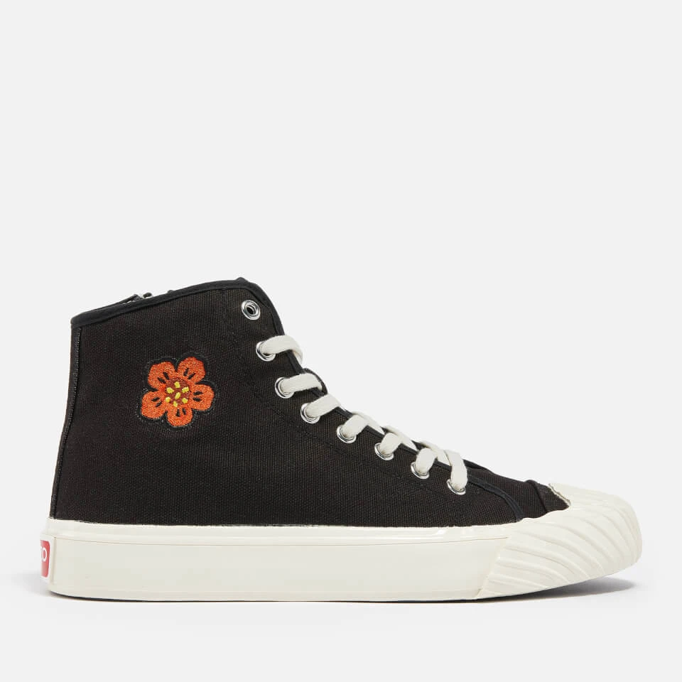 These KENZO School hi-top trainers offer a new look for casual footwear. They feature a zip and functional lace-up closure that make them easy to take off in whatever manner you prefer. They are decorated with a flower appliqué that became a signature motif of KENZO SS23.