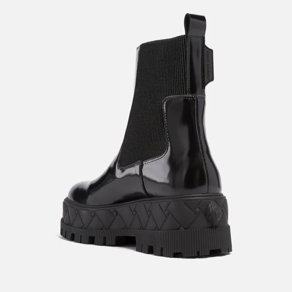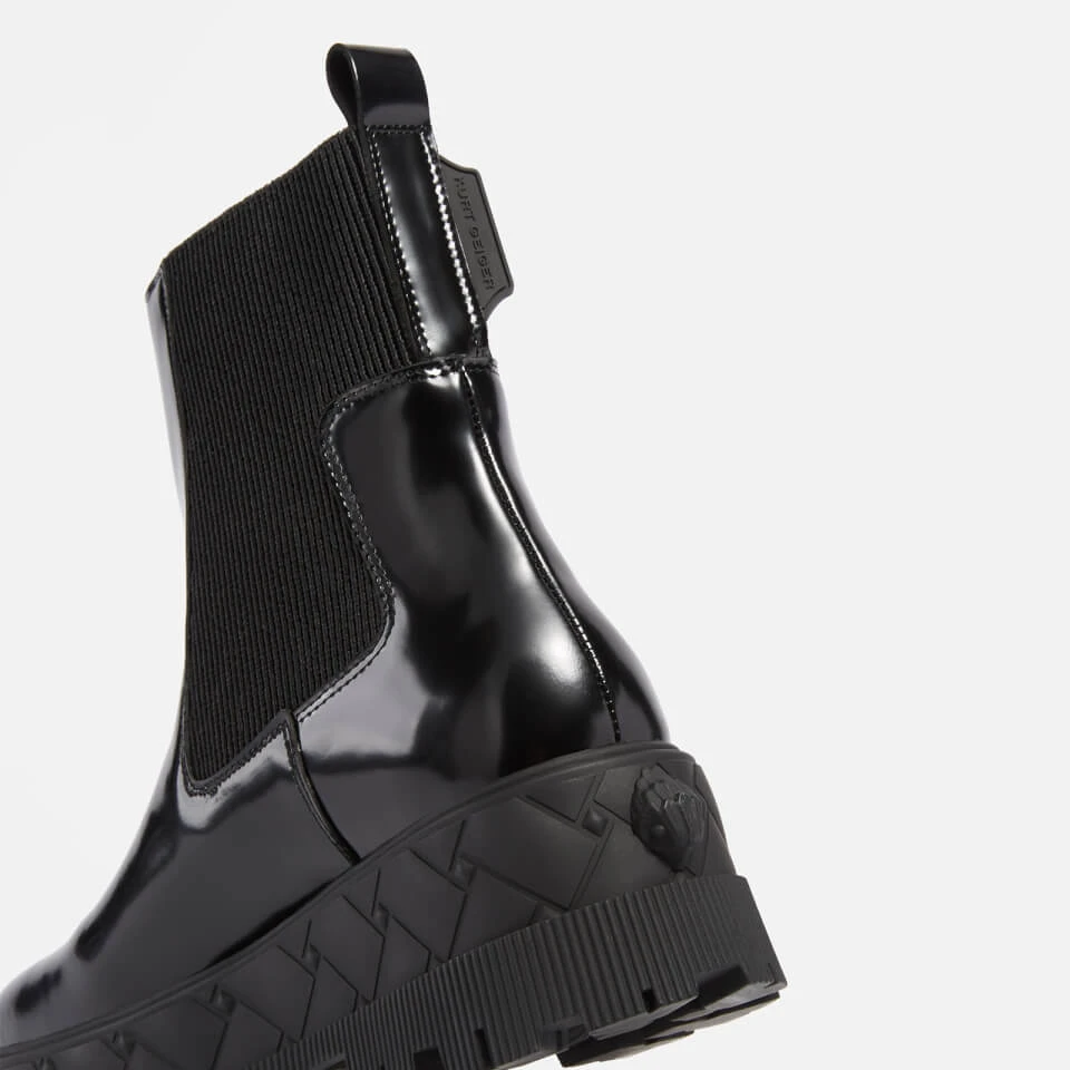- Pull tabs, elasticated side inserts, brand plaques, rubber soles
