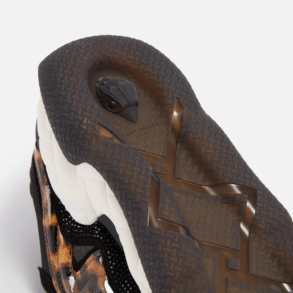- Pull tabs, designer logos, patent leopard print and embellished panels, chunky soles