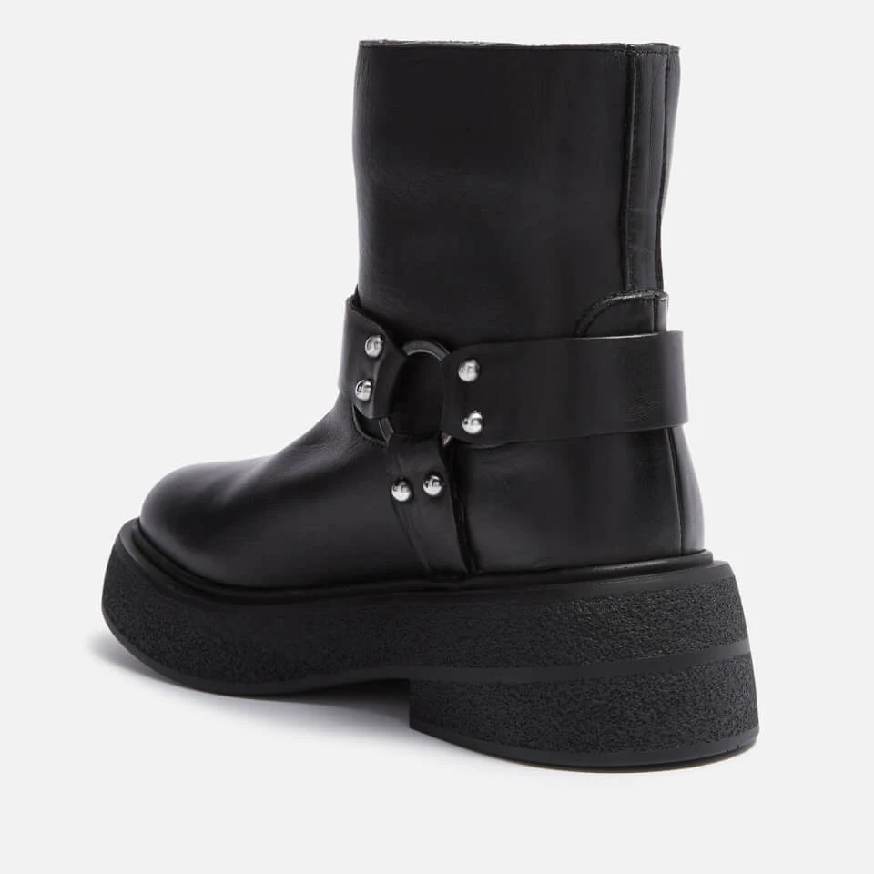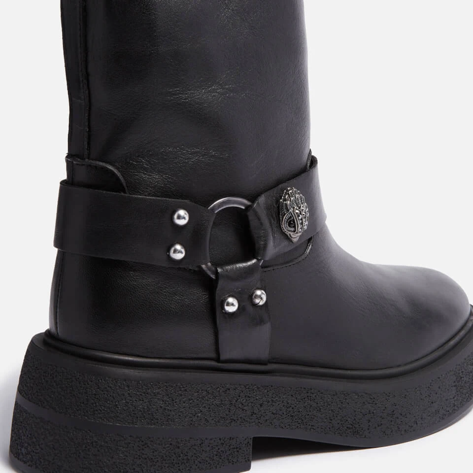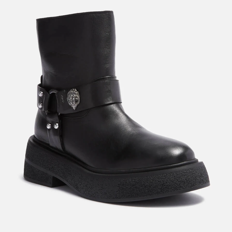 - Logo plaque, silver-tone hardware, leather boots straps, rubber soles