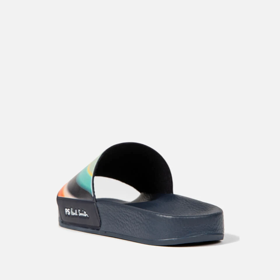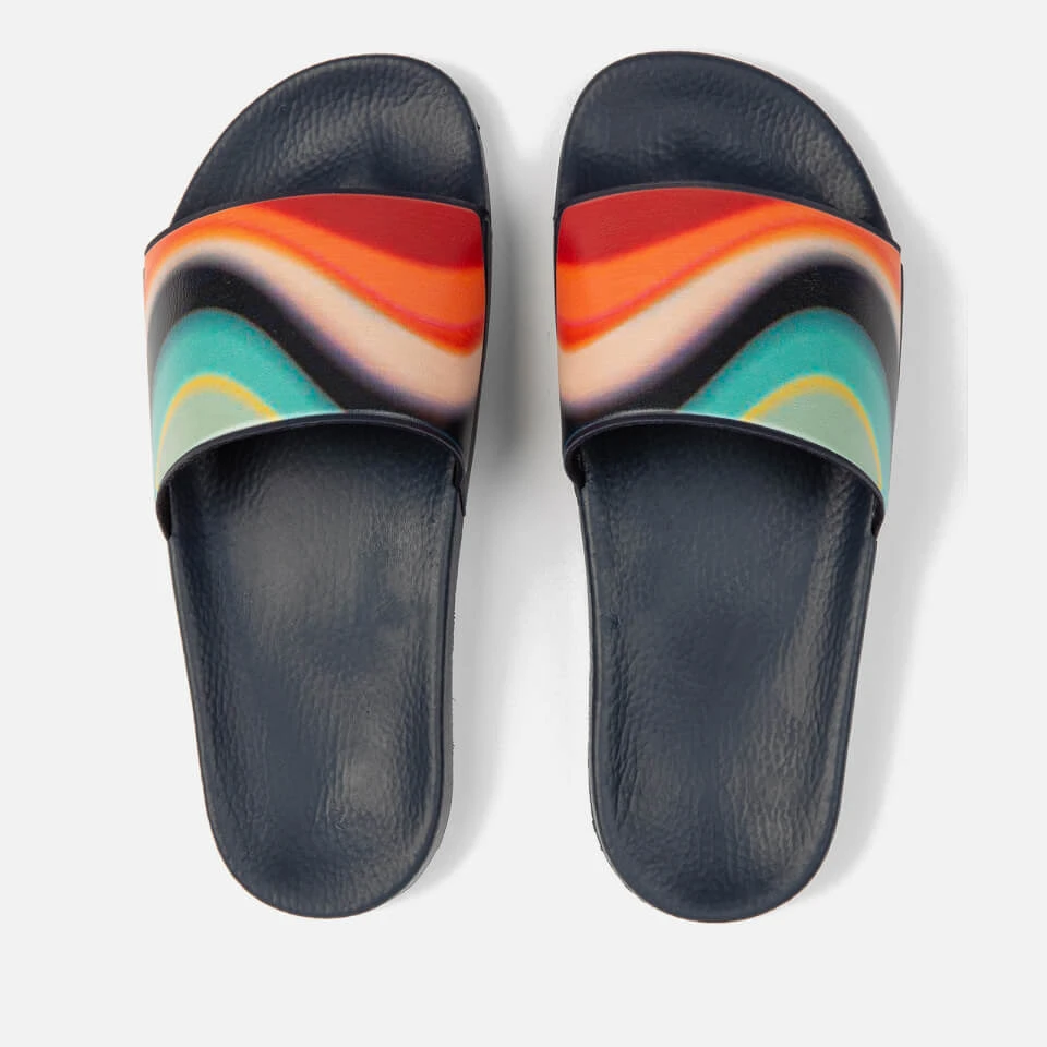From the beach to the poolside, Paul Smith’s Nyro slides are a holiday staple. They are made from durable rubber with added traction on the soles and are finsihed with the label’s cursive logo on the midsoles.