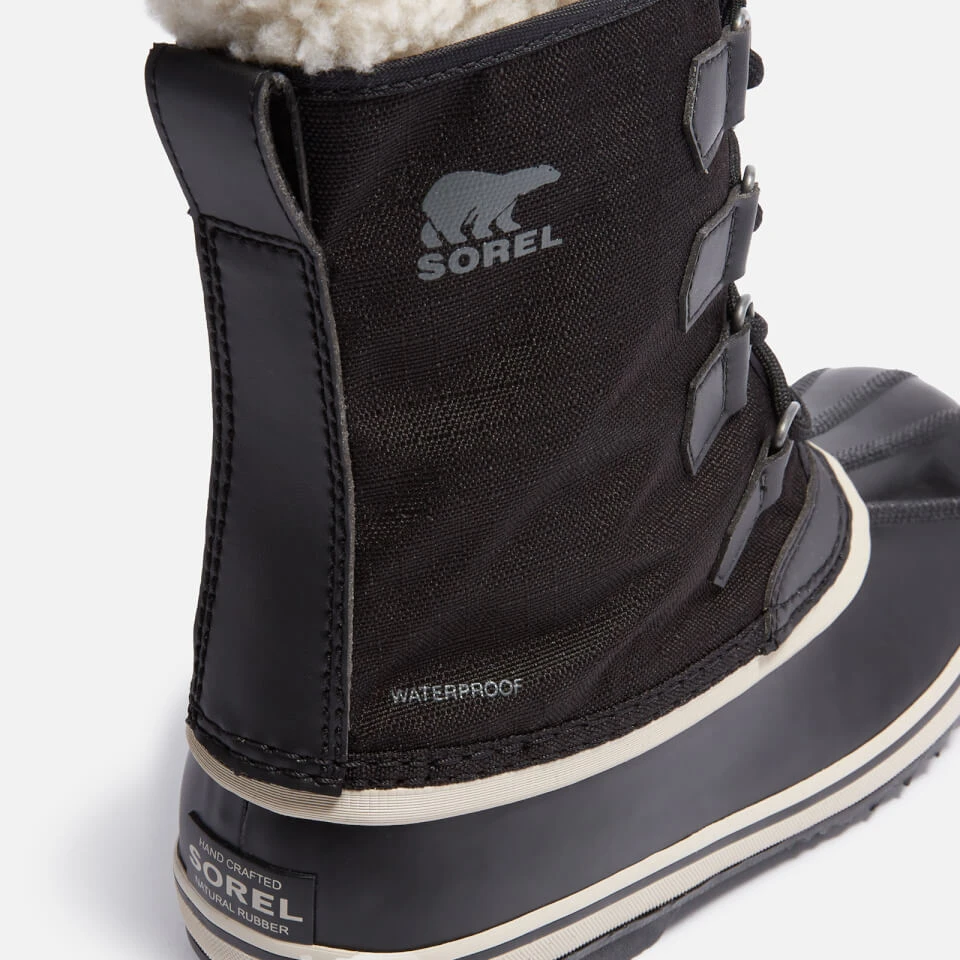 - Pull tabs, logo print, faux fur trims, rubber soles