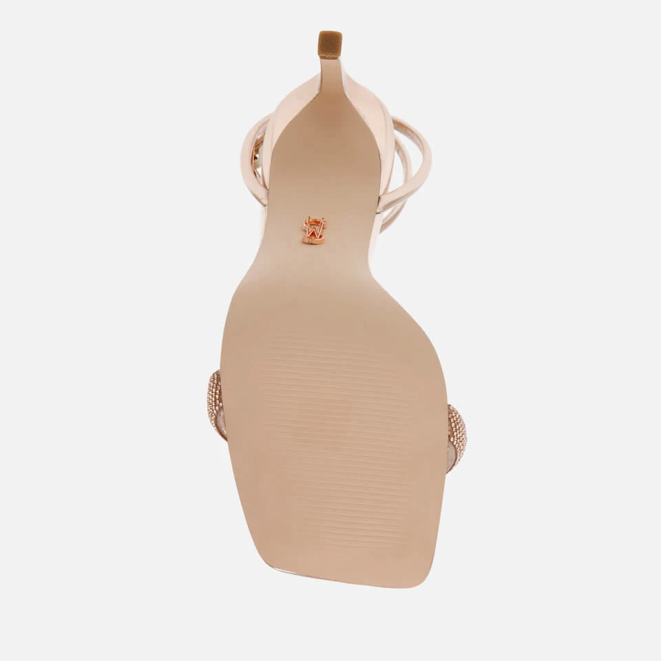 - Rhinestone-embellished strap, logo patch, designer plaque