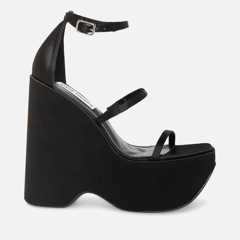 - Adjustable ankle strap, square open toe, block heel, logo patch