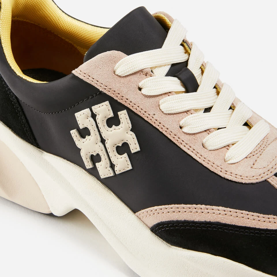 Tory Burch incorporates their Good Luck trainers with a cultural token of luck by adding a wishbone detail in the sole. The nylon uppers are complemented with suede panels while the designer logo is appliquéd at one side. Elevate the athleisure aesthetic and wear these with leggings and a sweatshirt.