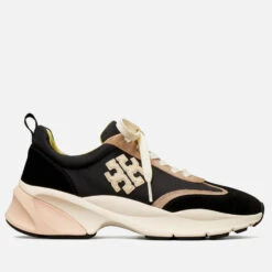 Taking the shape of one of this season’s most coveted silhouettes, Tory Burch’s pink and black Good Luck trainers are shaped into a running-style with contrasting nylon and suede detail. The signature double T monogram is showcased on the counters.