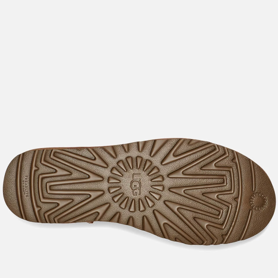 - Pull tabs, sheepskin lining, designer logo, serrated soles