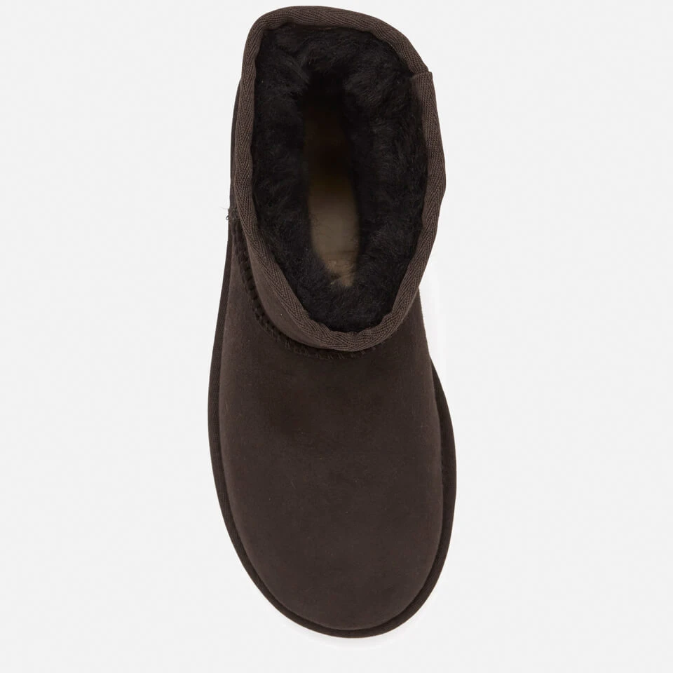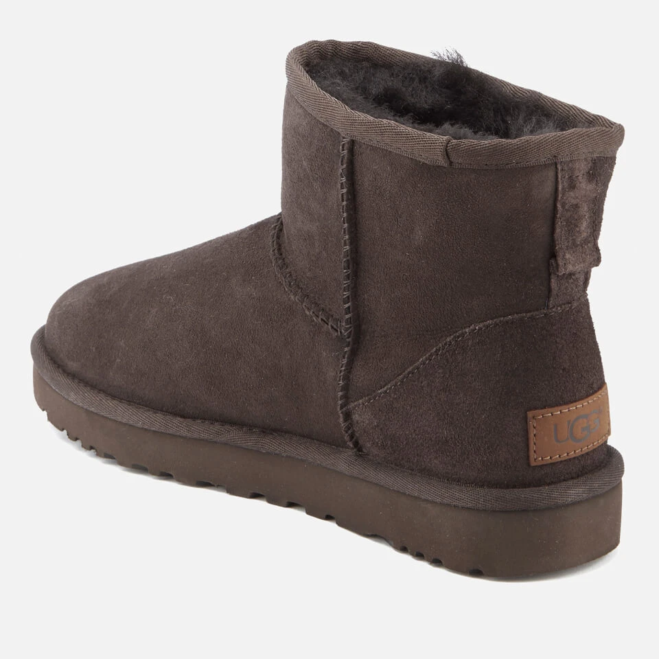 Women’s water-resistant, ‘Classic Mini’ UGG boots in black. Crafted from iconic twinface and suede that has been pre-treated to resist water and staining, the light and flexible ankle boot is the epitome of casual comfort. Fitted with signature UGGpure™ wool insole and set upon a Treadlite by UGG™ outsole for enhanced cushioning, durability and traction in both wet and dry conditions. Complete with logo label to the reinforced heel.