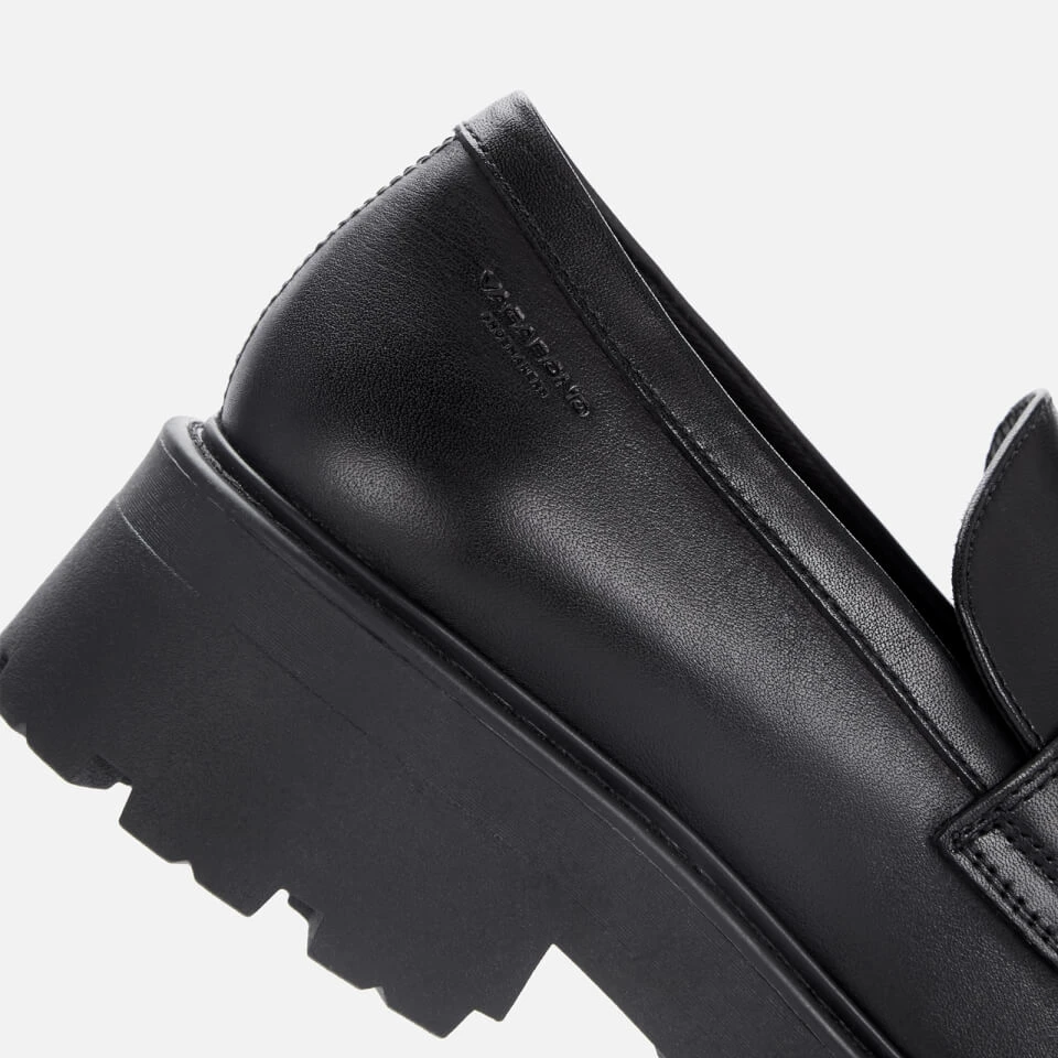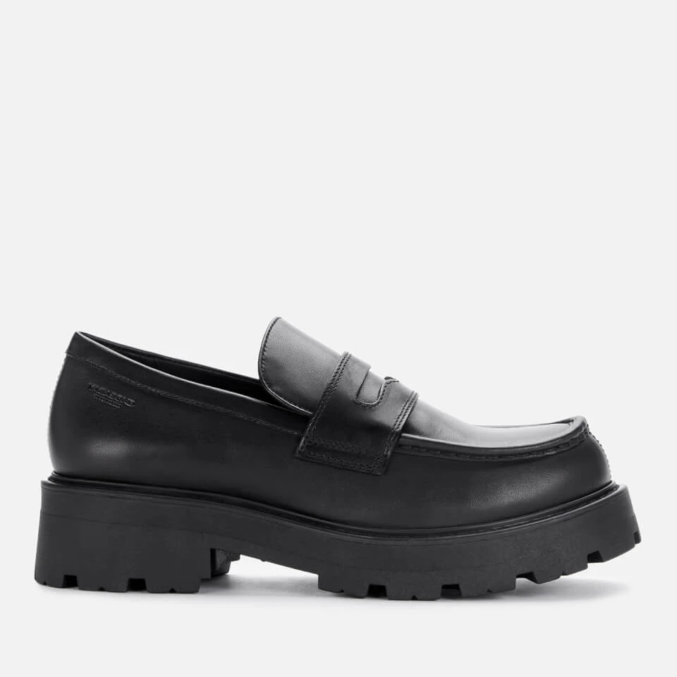 Vagabond’s Cosmo 2.0 loafers are a modern, chunky design that can be styled with tailored pieces or jeans. The smooth black leather uppers have a classic penny strap and an apron toe with visible stitching. They’re finished with a chunky platform sole and a rugged tread outsole for subtle lift.
