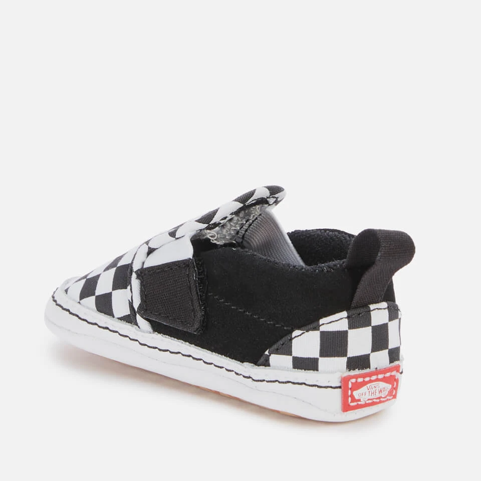 Based on Vans’ iconic checkerboard Slip-On trainers, these baby crib trainers are ideal for growing feet. They’re made with suede and canvas uppers, hidden gores and heel pulls to easily slip them on and off. An iconic waffle print features on the outsole and a signature Vans heel tab completes the slip-on style.
