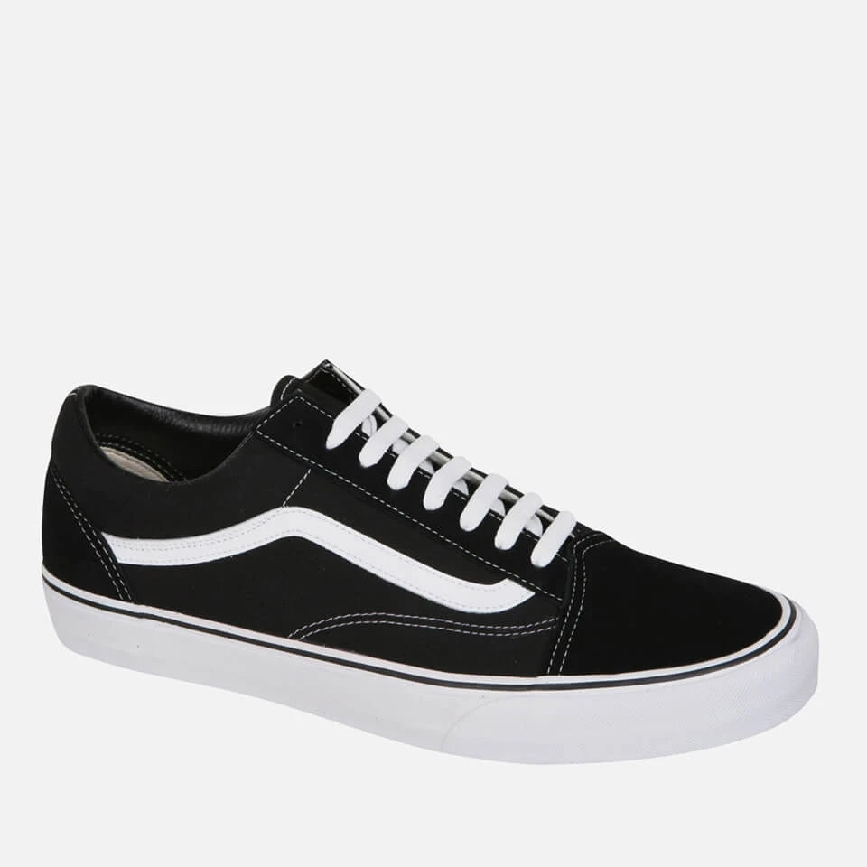 These Vans ‘Old Skool’ trainers will never go out of style. Made from top-quality materials, these casual shoes have been designed to last. The white laces, stitching and details stand out in an eye-catching contrast to the black leather of the upper part of the shoe. Not just stylish, the ‘Old Skool’ trainers are also extremely practical with the waffle grip of the white rubber sole providing unrivalled grip and traction. In addition, they are exceptionally comfortable, with a padded collar and foot bed. The familiar Vans brand is emblazoned on the heel.