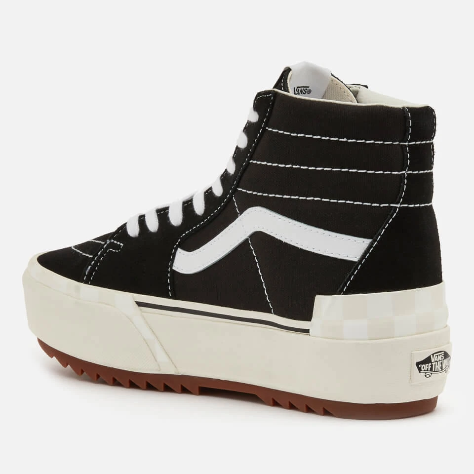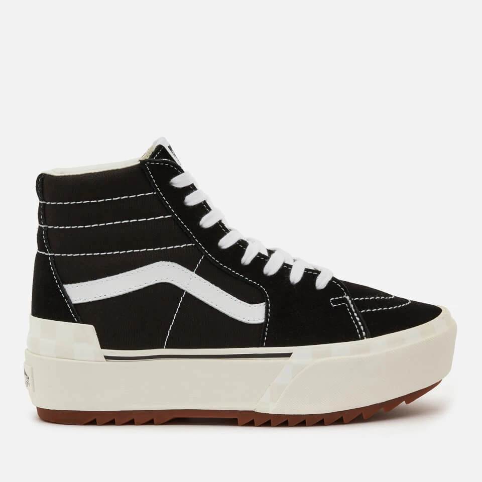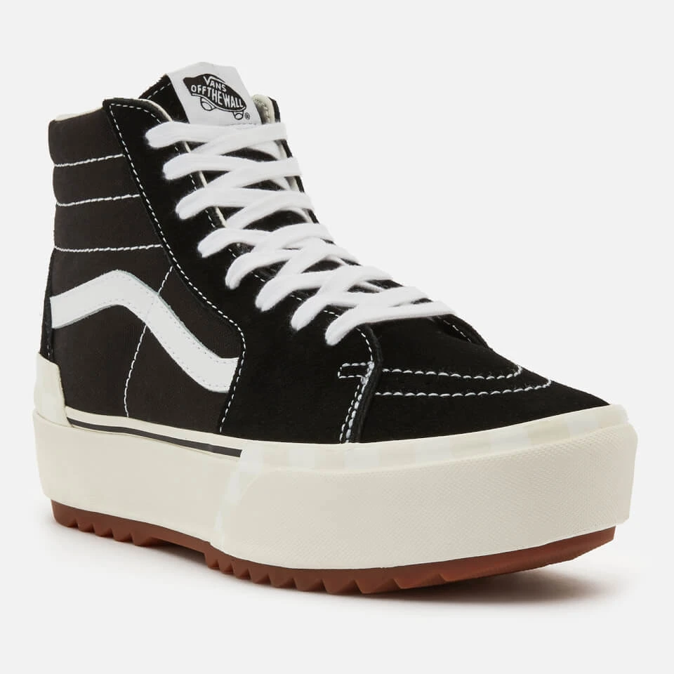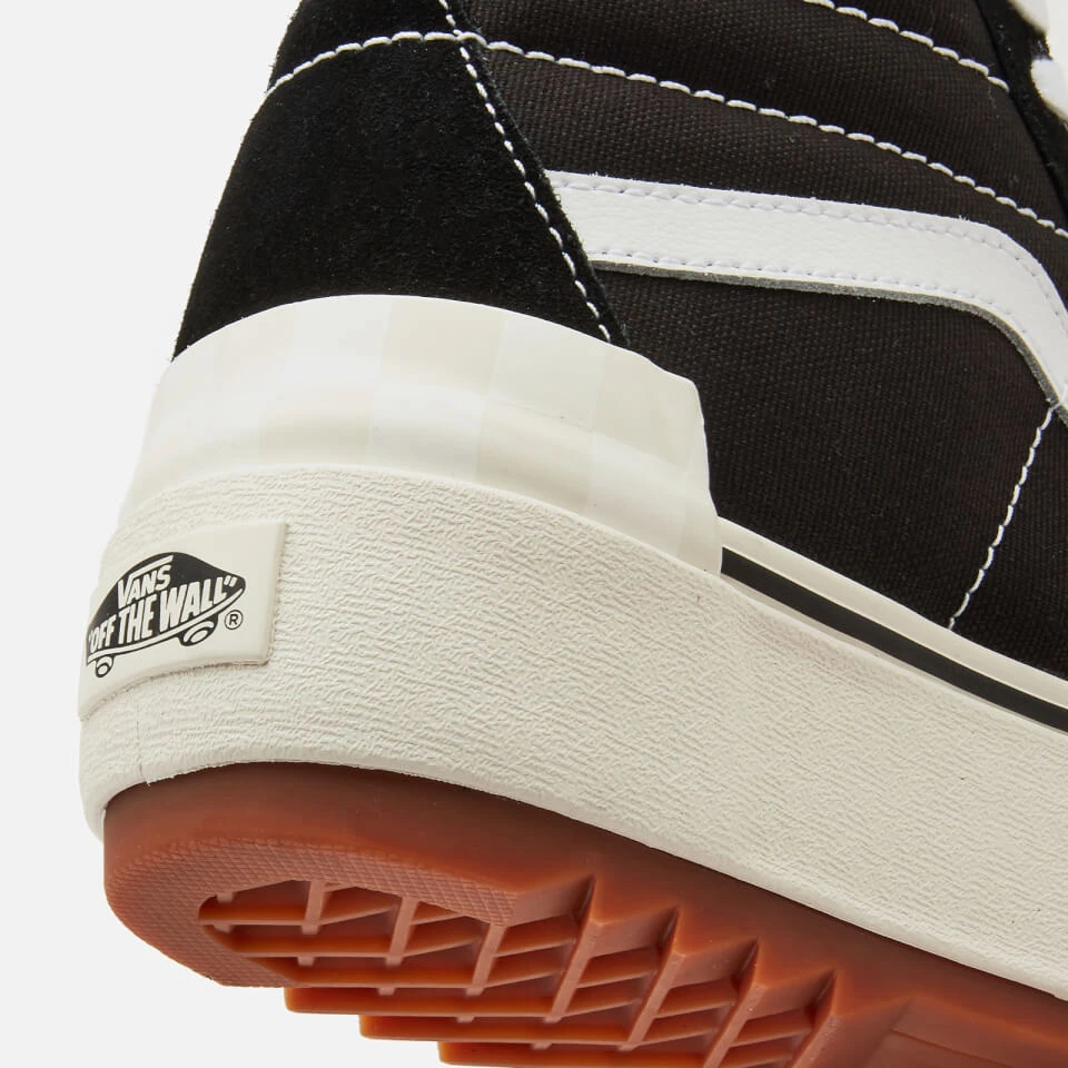 Vans ‘SK8-HI’ trainers updated with chunky platform soles with gripped rubber tread. Constructed with suede and canvas uppers and fitted with padded collars and translucent foxing tape for comfort.