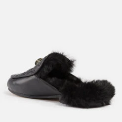 Kurt Geiger London Holly Embellished Faux Shearling-Lined Leather Mules