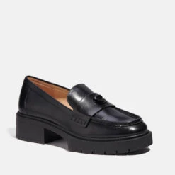 Coach Women’s Hanna Jacquard Gold-Tone Chain Leather Loafers